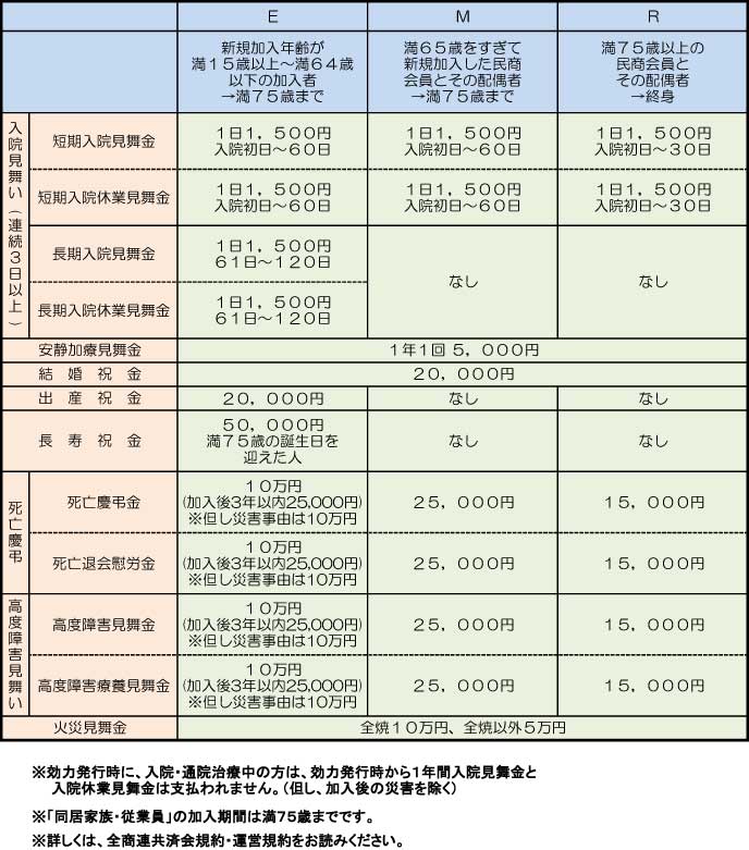 民商会員とその配偶者は年齢を問わず、入院・通院中でも加入できます。 |